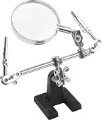 Помощната стойка на Tolsen е предназначена за работа с поялници и е подходяща както при ремонт на платки и часовници, така и при изработване на бижута и други дейности изискващи висока прецизност. Разполага със стоманена основа, осигуряваща стабилност, а щипките ѝ могат да бъдат регулирани. Стойката е оборудвана с лупа, която може да се завърта на 360°, има до 3x увеличение и е с диаметър ∅ 62 mm. ... |