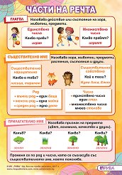 Таблото е с размери 70 x 100 cm. Таблото съдържа информация за: глагол; съществително име; прилагателно име. Настоящото издание е съвместимо с учебната програма за 2025/2026 г. Ако имате нужда от подвързия за различни формати учебници, тетрадки и учебни помагала, посетете нашата специална секция Подвързии. ... |