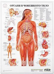 Учебното релефно табло: Органи в човешкото тяло на издателство Учмаг има отлична видимост и на него е изобразено човешко тяло с номерация върху съответния орган. В легенда е обяснено подробно на кой номер кой орган съответства. Отделно е показан строежът на някои органи: ухо, брахиално дърво, черен дроб, жлъчен мехур, панкреас, мозък, сърце, бъбрек, стомах, женска и мъжка полова система, артерии и вени. Таблото е изработено от PVC и има възможност за закачане с въже или пирон, посредством направения отвор в средата на горната му част. То се предлага в два варианта: с рамка и без рамка. Таблото без рамка е с размери 53. ... |