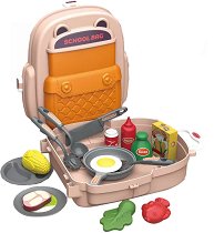 Превърнете се в най-добрия кулинар и усъвършенствайте вашите готварски умения с детската кухня 2 в 1. Тя идва в комплект с всичко необходимо - тиган, сатър, чинии, чашка, черпак, шпатула, шишенце с дресинг, солници, хранителни продукти и други. Компонентите са прибрани в пластмасова раничка. Тя разполага с текстилни презрамки и малка дръжка за носене в ръка. По този начин детето ще носи любимия си комплект навсякъде. Сглобена раницата е с приблизителни размери 20 / 21 / 9.5 cm. ... |