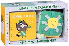 Картонената книжка ще запознае детето с много животни, а мекото кубче ще се превърне в любима играчка за разглеждане и игра през деня и за гушкане при заспиване. Те подпомагат усвояването на нови думи, развитието на говорните и двигателните умения, слуха, зрението и тактилната сетивност на детето. Книжката е с твърди корици и 20 страници с различно животинче на всяка. Кубчето има мека и удобна дръжка, украсено е с бродерии, цветни панделки и огледалце, и има вградена дрънкалка и шумолящи елементи. ... |
