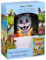 В красивата илюстрована картонена кутия ще откриете книжката с рими Добричкият зайко и плюшено зайче - любимото геройче от приказката. Книжката е с твърди корици, подплатена с дунапрен и 10 страници. Размерите на книжката са 17 / 23.5 / 1.3 cm. Размерите на плюшеното зайче са 12.5 x 21 x 4.5 cm."Прекарваше си дългоушко, бегачът славен сивогушко, в полянките щастливо, сладко, любим на мама и на татко. Към братчетата си внимателен и услужлив, и любознателен, трева си хрупкаше самичък, като сърничките добричък." Из книжката Комплектът Добричкият зайко е част от поредицата Приказки от гората за животните и ... |