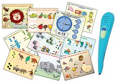 Умната писалка "Преди училище" на "Thinkle Stars" предоставя забавна интерактивна игра и много нови знания. Към писалката има 50 двустранни карти с общо 100 въпроса. Детето ще трябва да търси отговорите на въпросите от картите, а умната писалка ще му покаже верния отговор, като сигнализира със зелена светлина и утвърдителна мелодия, а за неправилен отговор с червена светлина. Играчката е подходяща за деца от предучилищна възраст. Тя представя нови знания, които ще заинтригуват и учениците от първи и втори клас. Децата ще се заинтригуват от въпросите за часовника, математически задачи, теглата и ...