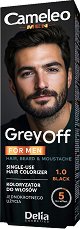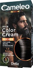 Крем боята на Delia от серията Cameleo е специално създадена за мъже, които искат бързо и лесно да възвърнат естествения цвят на косата си. Тя осигурява пълно покритие на белите коси и може да се използва и за боядисване на брада и мустаци. Иновативната формула без амоняк е обогатена с фитопигменти, получени от кафе и орехови черупки. Тя осигурява естествено изглеждащ цвят и се грижат за здравия вид на косъма. Боята действа изключително бързо – само 5 минути са нужни, за да се постигне равномерен цвят, без медни оттенъци. Ефектът е дълготраен и се запазва до израстването на нова сива коса. Cameleo Men осигурява мъжки ... |