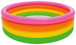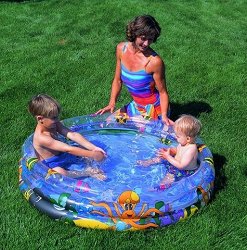 Детският басейн на "Intex" се състои от три надуваеми пръстена. Той ще подсигури дълги часове забавление за децата ви през лятото, когато водата може да ги разхлади от топлото време. Препоръчва се поставянето на басейна върху специална подложка за басейн, тъй като асфалтът или друга твърда повърхност могат да доведат до повреда или спукване. За да надуете най-бързо и лесно този продукт, ви е необходима помпа. При спукване на продукта, може да го залепите с лепило или лепенка. ... |