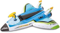 С надуваемата играчка от Intex ще можете да плавате върху повърхността на водата в басейна или морето, наслаждавайки се на топлите слънчеви лъчи. Тя е с атрактивна форма на изтребител и разполага с 3 въздушни камери за по-голяма безопасност. Освен това, играчката разполага с удобна дръжки за захващане и воден пистолет, вграден за нея. С пистолета се стреля лесно - когато детето натиска спусъка, той ще изсмуква вода директно от басейна. Надуваемата играчка е е с размери 117 x 117 cm, а капацитет ѝ на натоварване до 40 kg. В комплекта е включена и ремонтна лепенка. Внимание: Играчката не е спасително средство ... |