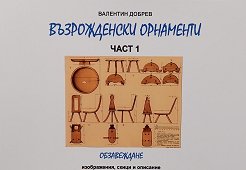 Двуезично издание на български и английски език. ... Изображения, скици и описание. Възрожденски орнаменти - част 1: Обзавеждане е книга албум с 25 цветни изображения на обзавеждане от епохата на Възраждането. Книгата съдържа изображения и текстове от книгата Резбата в Тревненската къща с автор Цаньо Антонов, издадена от БАН през 1955 г."Създадох тази книга, като използвах трудовете на Цаньо Антонов - човекът, посветил живота си за изучаване на българското архитектурно наследство. Отдавам почит и на неговият помощник, помогнал му да свали всички размери на тези неповторими шедьоври на българското майсторство - ... |