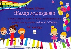 Специализирана школа по пиано, солфеж, теория и история на музиката за деца от 3 - 7 години. ... "Настоящата книжка е преломен момент в реализацията на тази система на обучение. Детето вече може да се ориентира в нотния текст и само, но все още е нужна помощта на родителя, що се отнася до разчитането на задачите и кратките упътвания ако детето още не знае да чете, или в насочването и конкретизирането на мисълта му. В книжка 6-та е застъпен мащабен обем знания, развиващ уменията и самостоятелността при музикалните му занимания. Но все още е нужен контрол, що се отнася до правилната постановка на ръката и тялото, ... |