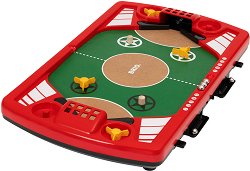 "Brio" представят нова версия на играта пинбол, която обещава много часове забавление. В нея могат да участват двама играчи, а не само един както е при класическия пинбол. Игралното поле наподобява футболно игрище. То разполага с няколко препятствия, които се въртят когато топчето се блъсне в тях. Те могат да се местят или махат, в зависимост от трудността на рунда. От двете страни на корпуса ще откриете 2 бутона, които управляват флиперите от двете страни на пинбола. От едната страна има 2 предвидени отделения, през които топчетата излизат след като са попаднали във вратата на противника. Топчетата се поставят ... |