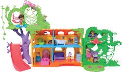 Къщата за игра от Spin Master пренася децата в тропическия свят на Дора Изследователката с впечатляващата си ширина от около 90 cm и множество зони за игра. Къщичката комбинира елементи на класическа къща за кукли и приключенски площад, изпълнен с интерактивни детайли, звуци и забавни изненади. Вътрешното пространство включва цветни стаи, мебели и аксесоари - диван, вана и други елементи, вдъхновени от сериала. Навън малчуганите ще открият люлееща се лиана, люлка, разклатен мост, маймунски лостове, вълшебна пързалка, танцуващо цвете и изскачащ Суайпър. В хола е разположен бутон, който активира звукови ефекти и двуезични ... |