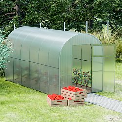 Оранжерия "Premium" на "Primaterra" е подходяща за защита на вашите култури от студ, мраз и скреж. Металната конструкция е изработена от двустранно поцинкован стоманен профил със сечение 40 x 20 mm и дебелина 1 mm. Предните панели на оранжерията са заварени заедно с рамките на вратите, а дъгите са цели и механично извити без заварки и рязане, което осигурява максимална здравина. Рамката издържа на натоварване от сняг от 180 kg/m 2, а разстоянието между гредите е 67 cm. Покритието е от поликарбонат с дебелина 4 mm и разполага с UV защита. Монтажът на оранжерията се осъществява чрез вкопаване в земята ... |