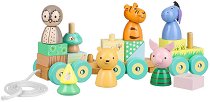 Комплектът е на тема Мечо Пух, където ще откриете още играчки, пъзели и комплекти. ... Комплектът от Orange Tree Toys ще се хареса на всеки малчуган. Той се състои от 3 основи с колелца, цветни кубчета за редене, както и фигурки на героите от Мечо Пух. Елементите са изработени от дърво, оцветено в нежни цветове. Децата ще могат да ги подреждат и да образува влакче. Основите могат да се прикрепят една към друга с помощта на колчета. Освен това детето ще може да дърпа своето влакче, благодарение на въженчето прикрепено към една от частите. ... |