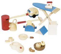 Кой не е мечтал да има изобилие от мебели и аксесоари за обзавеждане и игра? Сега тази мечта може да стане реалност с помощта на комплекта допълващи аксесоари от Goki! Той включва дъска за гладене, ютия, прахосмукачка, кана, тостер за хляб, кошче за боклук и много други. Елементите са изработени от дърво и са боядисани с безвредни бои на водна основа. С тях децата могат да пренареждат аксесоарите в своята куклена къща по всяко време. С любимите си куклички те ще имат възможност да съчиняват все нови и нови сценарии, дори и с група от приятелчета. ... |