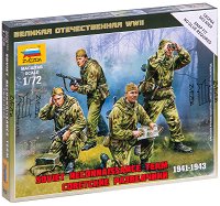 Комплектът е част от серията "Великата отечествена война" на "Zvezda". Съдържа 4 мащабно умалени фигури от пластмаса, изобразяващи съветски разузнавателен екип по време на Втората световна война. Действието се развива в периода между 1941 и 1943 година. Брой части: 17. Средна височина на фигурата: 24 mm. Мащаб на комплекта: 1:72. За сглобяването на комплекта не е необходимо лепило. Фигурите са направени от едноцветна пластмаса. Може да се боядисват с боички. ... |