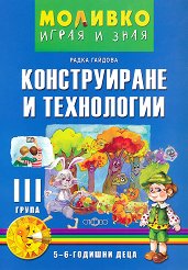 За деца на 5 - 6 години. ... Конструиране и технологии за 5 - 6-годишните деца по програмна система Моливко - играя и зная предлага в разгърнат план достъпни технологии за конструиране на предмети от околния материален свят. Темите са актуални, напълно съобразени с ДОС за трета група, в която се поставя началото на подготвителния етап. В същото време те са осигурени с необходимите методически ресурси (цветни образци от хартия и картон и други материали по някои теми), чрез които в този етап децата затвърдяват и допълват вече усвоените технологични знания, усъвършенстват техническите действия, а при игра със ... |