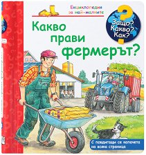 Енциклопедия за най-малките: Какво прави фермерът? съдържа кратки и достъпни текстове с ясни, опростени и информативни илюстрации. На всяка от страниците има повдигащи се капачета. Книгата има за цел: да даде първи познания за околния свят и да отговори на многобройните въпроси, задавани от децата; да развие любознателността и говорните умения, да обогати речта; да позволи на родителите и педагозите да разширят съдържанието чрез допълнителни въпроси и обяснения по илюстрациите; да предложи обучителни ситуации по направленията за предучилищно възпитание и подготовката за първи клас. Книгата е част от поредицата ... |