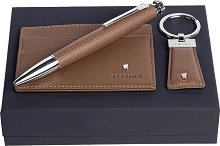 Комплектът от колекцията Chrono Bike на Festina е идеалният подарък за близък приятел или бизнес партньор. Той се състои от химикалка, ключодържател и калъф за карти и документи. Химикалката притежава невероятна структура и детайли от висок клас. Обвита е във веган материал с текстура, съответстваща на едноименната кожена линия Saffiano на марката. Тя има добър захват и пише гладко в черен цвят върху листа, а чрез нейния фин клипс, може да се захване за джоба ви или за тефтер. Ключодържателят е изработен от внимателно подбрана естествена кожа и има метална халка. Той е със семпъл и модерен дизайн. Комплектът е ...