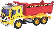 Детският камион е изработен от пластмаса и разполага с подвижно ремарке. Той има светлинни и звукови ефекти, които се задействат посредством разположените върху каросерията бутони. Камиончето е с приблизителна дължина 24 cm. Играчката работи с 3 батерии AG13, които са включени в комплекта с демонстративна цел. Препоръчително е да бъдат сменени с нови, преди играчката да бъде дадена на детето. ... |