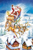 Коледна картичка - Дядо Коледа и лисиче