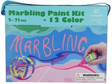 Творческият комплект "Създай сам - Мрамони картини" от "Jarmelo" е подходящ за малки и големи творци. Той съдържа безопасни за децата 12 разноцветни бои, шишенце с вълшебен прах, 10 картонени шаблона за рисуване, тавичка, инструменти и инструкции. Начинът, по който се рисува с мраморните бои, е лесен и забавен. Изсипете вълшебния прах в тавичката заедно с вода. Разбъркайте добре, след което капнете по избор от цветните бои. С помощта на сламките, включени в комплекта, създайте шарки и различни фигури по ваш вкус. Поставете парче хартия върху повърхността на съда и пренесете творението върху нея. След ... |