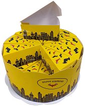 Детският рожден ден или празник няма да е същият без торта. Но в същото време не винаги е удачно за празненството да се направи истинската версия на вкусния сладиш. В тези моменти картонената торта е изключително добра алтернатива. Тя се състои от 24 кутийки с формата на парче от торта, които могат да се напълнят със сладки изкушения и малки изненади за твоето дете и неговите приятели. Тортата пристига разглобена. За да я сглобиш просто ще трябва да сгънеш предварително подготвените разгъвки за парчета торта, без да са ти необходими каквито и да е инструменти или лепило. Освен това в комплекта са включени подложка и ... |