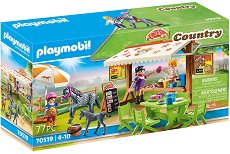 Конструкторът е от серията Country, където ще откриете още продукти на темата. ... Конструкторът от Playmobil ще зарадва децата и ще им даде възможност да пресъздадат пони кафене. Комплектът съдържа две минифигурки и фигурка на дете, пони и жребче, щанд с люк и касов апарат, маса и четири стола, чадър, торта, кексчета, храна за пони, както и други аксесоари, с които децата могат да измислят различни ролеви игри и въображаеми истории. Фигурките имат подвижни ръце и крака, за да бъде играта интересна и вълнуваща. Конструкторът е подходящ за деца над 4-годишна възраст. Приблизителната височина на фигурките е 7.5 cm. ... |