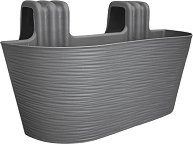 Саксията на "Plastia" е предназначена за прикрепяне на парапети, огради или тераси в града с максимален диаметър ∅ 6.5 cm. Подходяща е за отглеждане на билки и едногодишни растения, докато самополивната система държи растенията винаги напоени, осигурява необходимото количество въздух и отдава на растението точно толкова вода, отколкото има нужда. Саксията е с размери 30 / 24 / 26 cm. Характеристики: обем на саксията - 5.5 l обем на резервоара - 1.6 l + 1.6 l ... |