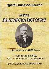 Препис: Д-р Николай Иванов Колев. ... "Драги читателю, В ръцете си държиш една забравена книга, напечатана преди нашето освобождение от турско робство, през 1868 г., от Драган Цанков, станал по-късно съосновател на Българското книжовно дружество, предшественик на Българската академия на науките. Книгата е най-кратката българска история, печатана някога в евтин джобен формат. Целта на автора е била да даде на всеки българин кратка информация за нашата история от втори век преди новата ера, до падането на българите под турско робство. Тази задача Цанков изпълнява успешно. Поради минималния формат, той не дава ... |