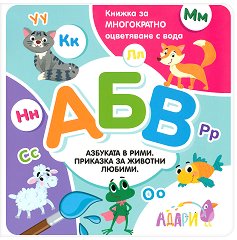 Приказка за животни любими. Книжката е забавно помагало за най-малките, с чиято помощ лесно ще научат буквите от българската азбуката и ще срещнат много представители на животинското царство. Жабка, скрита в шапка, се впуска в горско приключение, за да помогне на децата да открият красивия свят на буквите. С тази книжка вашето дете ще се превърне в истински вълшебник! Разгърнете страничките на книжката. Използвайте четка, намокрена само с вода, за да превърнете картинките в истински цветни вълшебства. Оставете да изсъхне. Можете да повтаряте този трик отново и отново! Богато илюстрираната книжка е предназначена за ... |
