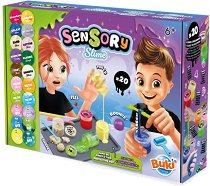 Творческият комплект от Buki France ще се хареса на всяко дете над 6-годишна възраст. Той се състои от 20 бурканчета със смес за слайм, бъркалки, ролер и тавичка. За да се получи лепкавата смес е нужно да следвате инструкциите. Добавете нужното количество вода и вижте какъв слайм има в бурканчетата. Всяко от тях е в различен цвят и с различна текстура. Ще откриете слайм, който свети в тъмното, който е мек като памук, с металиков ефект и много други. Използвайте включените уреди, за да оформите, замесите и смесите получената лепкава смес. ...