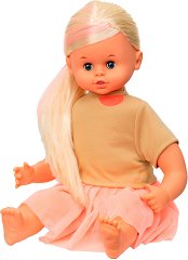 Куклата е от серията Skrallan, където ще откриете още интересни продукти. ... Куклата от Micki е идеален спътник в игрите на вашето дете. Тя е с височина 45 см. Облечена с пуловер с неонови елементи, пола от тюл и дълга, мека коса, която е лесна за разресване. Куклата говори на 5 езика - шведски, норвежки, датски, фински и английски, а с натискане на корема ѝ произвежда 25 изречения, насърчаващи активна игра. Тялото ѝ е меко и затваря очи, когато легне. Произведена от PVC, тя не съдържа забранени фталати или бисфенол и отговаря на стандартите EN71, REACH и SVHC. Височината на куклата е 45 cm. Продуктът ... |