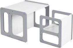 Комплектът маса и столче на GINGER HOME е практично и стилно решение, което комбинира функционалност, безопасност и модерен дизайн. Създаден по Монтесори принципи, той насърчава самостоятелността, организираността и творческото мислене на детето. Дизайнът на комплекта позволява той да се използва в 3 варианта - като маса със столче, маса с табуретка или като пейка с помощна масичка. Това го прави идеален за учене, рисуване, хранене или игра. Благодарение на ергономичните си форми и заоблените ръбове, комплектът осигурява безопасност и комфорт, а гладката MDF повърхност с покритие против надраскване улеснява почистването. ... |