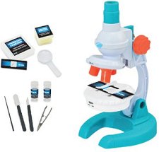Детският микроскоп е прекрасен подарък за всеки малък и любопитен изследовател. Той е подходящ за деца над 8-годишна възраст и към него са добавени различни аксесоари за изследване. Микроскопът е с 3 режима на увеличение - 80x, 200x и 450x пъти и има LED светлина, с която детето ви ще вижда по-ясно пробите. Освен него, в комплекта ще откриете и кутийка с чисти предметни стъкла, предметно стъкло за проба, пинцета, 2 шишенца и кутийка с етикети. Микроскопът работи с 3 батерии 1.5V AA, които може да закупите отделно. Характеристики на микроскопа: увеличителна способност - 80x / 200x / 450x окуляр регулиране на фокуса ... |