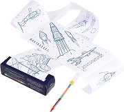 Плакатът за оцветяване от Rex London има красиви картини на ракети, космонавти и планети. За да оживее картината, използвайте включения в комплекта секторен молив със 7 сменящи се цвята. А също така могат да се използват и други цветни моливи, пастели или флумастери. Ролката е с приблизителни размери 200 x 13 cm. ... |