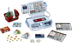 Касовият апарат от Klein е идеален избор за всички деца, които обичат ролеви игри с пазаруване и магазини. Този комплект съчетава забавление, учене и модерни функции, които пресъздават реалистично изживяване при самообслужване в супермаркет. Играчката е оборудвана с екран с 3 сменяеми поставки, изобразяващи продукти от супермаркет, магазин за инструменти и ресторант. ПОС терминалът има клавиатура, реалистични звуци и място за поставяне на банкова карта. Скенерът издава звук и светлина, а цялата каса е допълнена от заключващо се чекмедже за пари, монетник и механизъм за издаване на монети с натискане на бутон. ... |
