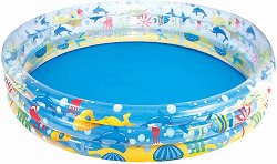Надуваемият басейн "Морски обитатели" от "Bestway" ще осигури на малчуганите прохладна игра в горещите летни месеци. Може да се постави на плажа или в двора, а ако времето е дъждовно може да се надуе вкъщи и да се напълни с разноцветни пластмасови топки. Внимание: Препоръчва се да поставите басейна върху специална подложка, тъй като асфалтът или друга твърда повърхност могат да го повредят или спукат. Ако това се случи, в комплекта ще намерите ремонтна лепенка. За да надуете най-бързо и лесно този продукт, ви е необходима помпа. При спукване на продукта, може да го залепите с лепило или лепенка. ... |