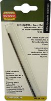 Комплект ножове (без щифтове в краищата) за мини банциг с фини зъби за рязане на твърди и меки материали. Размери на ножовете според броя зъби и предназначение: за мека и твърда дървесина, пластмаси, Perspex и меки цветни метали: 130 / 1.50 / 0.48 mm; 14 TPI (14 зъби на инч) 130 / 1.20 / 0.38 mm; 17 TPI (17 зъби на инч) 130 / 0.8 / 0.34 mm; 20 TPI (20 зъби на инч) 130 / 0.77 / 0.30 mm; 25 TPI (25 зъби на инч) 130 / 1.10 / 0.50 mm; 28 TPI (28 зъби на инч) за твърди материали, като стомана и Pertinax: 130 / 0.85 / 0.40 mm; 36 TPI (36 зъби на инч) 130 / 0.74 / 0.36 mm; 41 TPI (41 зъби на инч) 130 / 0.60 / 0. ... |