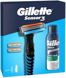 Козметичният комплект от Gillette е прекрасен избор за подарък, на който би се зарадвал всеки мъж. Той съдържа самобръсначка, резервни ножчета и гел за бръснене. Самобръсначката Gillette Sensor 3 е създадена да осигури комфортно и прецизно бръснене. Тя разполага с подвижна глава с три прецизно наточени остриета, която се адаптира към контурите на лицето и намалява натиска върху кожата. Овлажняваща лента оставя невидим слой, който улеснява плъзгането на остриетата по кожата и намалява триенето. Ергономичната дръжка осигурява по-добър контрол на захвата, дори когато е мокра. Гелът за бръснене от серията Series е ... |
