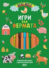 Цветни флумастери, забавни задачки и тренировка на концентрацията, фината моторика и логическото мислене - всичко това ви очаква в Игри във фермата, занимателната книга, предназначени за малки любознайковци, които обичат животните. Любимите животни от фермата ви очакват за весели игри - свържете точките, оцветете картинките, открийте разликите, решете загадките и се забавлявайте, докато се обучавате! Книжката е част от поредицата Вече мога на издателство СофтПрес. ... |