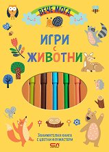 Цветни флумастери, забавни задачки и тренировка на концентрацията, фината моторика и логическото мислене - всичко това ви очаква в Игри с животни, занимателната книга, предназначени за малки любознайковци, които обичат животните. Любимите животни от близо и далеч ви очакват за весели игри - свържете точките, оцветете картинките, открийте разликите, решете загадките и се забавлявайте, докато се обучавате! Книжката е част от поредицата Вече мога на издателство СофтПрес. ... |