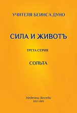 Солъта е трети том от поредицата Сила и живот. Това са Неделни беседи, държани пред широка публика в периода 1917 - 1919 година от Учителя Петър Дънов (с духовно име Беинса Дуно). Именно тази поредица и по-точно нейните от първи до пети том, са книгите, които лично Учителят Петър Дънов е препоръчвал, когато са го запитвали: "От къде да започнем да четем вашето слово?" Тези беседи са базирани на пояснения и дълбок анализ на стихове от Библията и са своеобразен синтез на развитите от него по-късно принципи и закони на езотеричното християнство. Текстовете са едновременно достъпни за четене и вдъхновяващи, ... |
