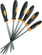 Пилите на Tolsen са подходящи за обработка на метал. Снабдени са с ергономични двукомпонентни дръжки за по-добър захват и по-голям комфорт по време на работа, а работните им части са изработени от легирана стомана за висока здравина и устойчивост на корозия. Комплектът се състои от 2 плоски пили, триъгълна, квадратна, обла и полуобла пила. Пилите са с дължина 100 mm. ...