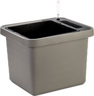 Саксията на Plastia е предназначена за отглеждане на билки и цветя в двора или градината. Самополивната система държи растенията винаги напоени, осигурява необходимото количество въздух и отдава на растението точно толкова вода, отколкото има нужда. Достъпът на въздух до корените се осигурява чрез наклонения отвор, който служи както за поливане, така и като преливник. Растението се напоява чрез фитил, чиито краища поемат вода от резервоарчето и отдава към корените му. Саксията е изработена от висококачествена пластмаса и е устойчива на слънчеви лъчи. Характеристики: саксия с размери 25 / 18 / 25 cm е с обем 4.5 ... |