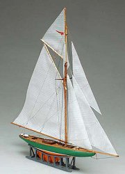 Умален модел на ветроходна лодка Shamrock. Оригинално описание: Sir Thomas Lipton is considered to be the most tenacious challenger in the history of the America’s Cup. On five unsuccessful occasions over a span of 30 years he tried to bring the pre-stigious cup home to America. But Lipton was never daunted as he knew that participation in this most important regatta was excellent advertising for the tea which carried his name. Our model is the 1st construction of the Shamrock which lost against Columbia in 1899. Комплектът съдържа: дървени елементи за сглобяване на лодката конци текстилни платна за лодката ... |