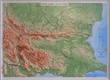 Релефната карта съдържа информация за: географска мрежа; държавни граници; релеф, представен чрез хипсометрично оцветяване; столици и основни градове; основни пътища; географско разпределение на полезни изкопаеми на територията на България; легенда. Хоризонтален мащаб на картата: 1:1 000 000. Вертикален мащаб на картата 1:150 000. Релефната карта е с размер: 42 x 54.5 cm. ... |