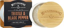 Специалистите от Scottish Fine Soaps ви предлагат комплект от сапун за бръснене и керамична купа с дървено капаче. Сапунът овлажнява кожата и омекотява космите, осигурявайки безпроблемно плъзгане на ножчетата на самобръсначката. Подходящ е и за мъже с чувствителна кожа. Формулата е обогатена с екстракт от бял трън, който има противовъзпалителни, овлажняващи и подхранващи свойства. Той намалява риска от възникване на раздразнения и възпаления по кожата. Включен е екстракт от картам (шафранка), който действа тонизиращо, регенериращо и антибактериално. Той хидратира кожата и омекотява космите, спомагайки за гладко ... |