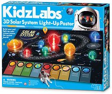 Комплектът е част от серията Kidz Labs, където ще откриете още образователни играчки, роботи и комплекти по темата. ... Запознайте се със слънчевата система с помощта на комплекта от 4M. С него ще може да сглобите табло с всичките планети. Комплектът съдържа основа, светещи лампички, цветни елементи и други аксесоари. Следвайте инструкциите, за да сглобите планетите, закачете светлините, а след това ги включете. Всеки елемент е с различен размер и осветление. Освен това върху таблото, детето ще открие имената на планетите както и интересна информация за тях. Комплектът може да се използва както у дома, така и за учебни ...