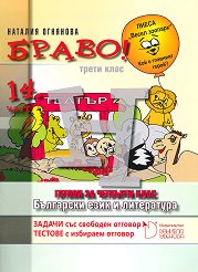 Част 14 от цялостната дидактична система "Браво!" съдържа 100 литературно-езикови задачи и подзадачи, изискващи свободен отговор, както и 80 тестови задачи с избираем отговор върху учебното съдържание по български език и литература за трети клас, регламентирано в Националната учебна програма, обявена от Министерството на образованието и науката в Република България. Задачите са дозирани равномерно по брой и по степен на сложност. Помагалото осигурява работата по проверяване и оценяване степента на усвоеност на знанията и уменията на учениците от 3. клас за родния език в края на учебната година и установява ... |