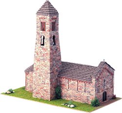 Умален модел на църква "St. Juan de Baños" в романски стил на "Domus Kits". Църквата "St. Juan de Baños" е първият вестготски паметник в град Baños de Cerrato. Този град в община Ventra de Baños, в провинция Паленсия (Испания), е място, на което са построени множество римски вили за отдих. Тя се счита за най-старата църква в Испания, въпреки че са открити руини и на по-стари църкви. Това е трикорабна базилика с три апсиди. През годините е претърпявала частични реконструкции и апсидите в днешния ѝ облик не съществуват. Моделът е направен от картон, върху който се ... |