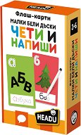 С играта от Headu вашето дете ще се научи да чете и пише на английски език. Тя се състои от 25 големи карти и триещ се маркер. От едната страна имат изображение и съответстваща на него дума. Първата буква от думата е оцветена в различен цвят, като по този начин ще помогне на детето по-лесно да запомня думите. От другата страна картите са с подготвени думи, с еднаква първа буква. Така малчуганът ще може да упражнява своето писане, като минава върху думите с маркера. ... |